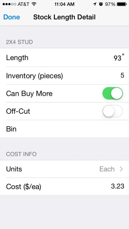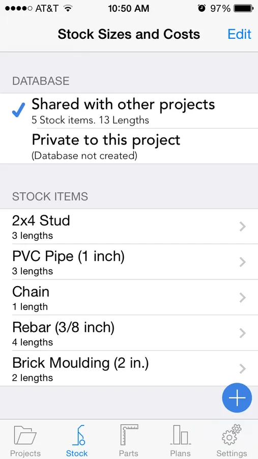 * Set up your own stock types, lengths and inventory. Even list your off-cuts.