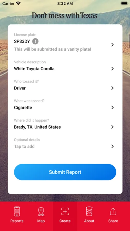 What can you do when you see trash blowing in the wind and eventually landing on the side of our Texas highways? Instead of delivering your own method of justice, we suggest turning the litterer in through the Texas Department of Transportation’s Report a Litterer Program. It’s an anonymous way to gently remind litterbugs they Don’t mess with Texas.