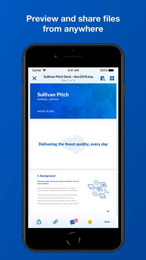 • Upload and view hundreds of files types, like PDFs, Microsoft Office files, Google Workspace docs, and many more