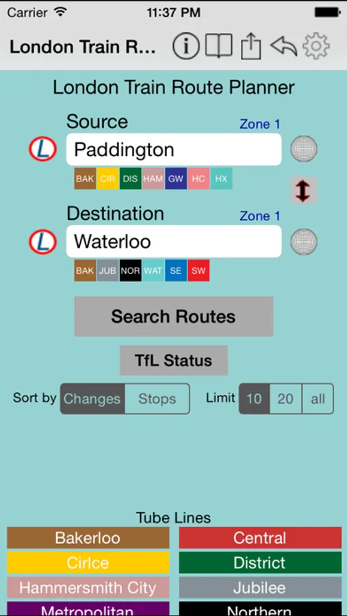This app helps you find London Underground, DLR, Overground and Train routes which can be used to travel from one location to another in London city.