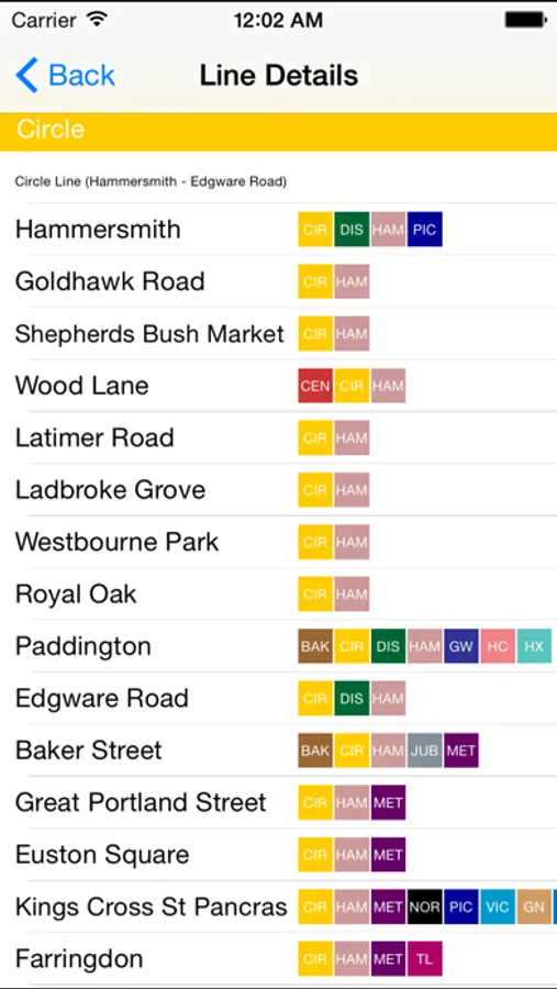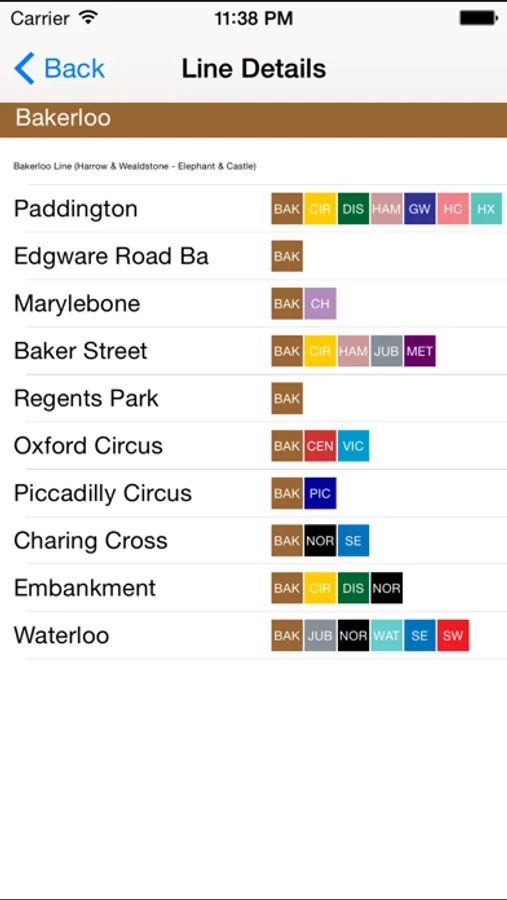You can also view the detailed station list for each train line in London. You can long tap on any station name from the list to see it on online maps.