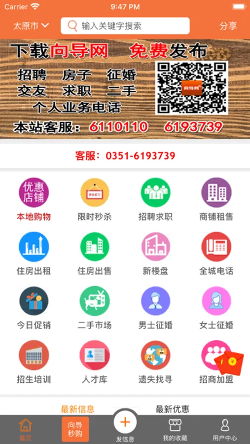 生活向导网提供房屋租售、招聘求职、商家黄页、二手物品、旅游交友、餐饮娱乐等多种生活信息服务,是《生活向导》在线服务信息平台。(特别声明:本应用的所有活动与内容跟苹果公司无关)
