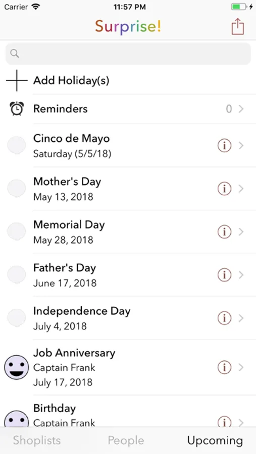 • See all upcoming occasions with one tap.