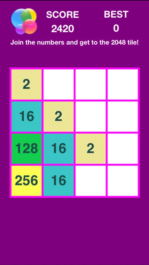 Swipe to move all tiles, when two tiles with the same number, they merge into one.