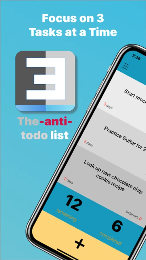 THREE is designed to be a minimal task assistant that is non intrusive. Traditional todo lists add stress and complexity by making YOU track, categorize, and prioritize tasks. They're digital task masters that nag and confuse you until you give up in frustration. They punish you with incessant notifications when you're overdue on a task (which you would probably ignore anyways).