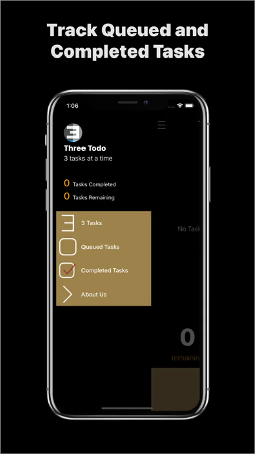 THREE changes the way you manage tasks. Tasks go in. THREE will present you with three and only three tasks at any given time. As you deal with them, we'll keep track and tell you how you're doing.