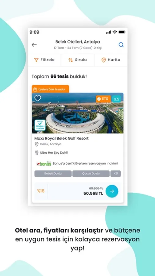 Mobil uygulamada sizi bekleyen birbirinden özel avantajlarla her an bir tatil fırsatı yakalayabilirsiniz. Mobil uygulamayı indirerek yurt içindeki ve yurt dışındaki tesislere özel indirimlerden ve dönemsel kampanyalardan haberdar olabilir, kolayca rezervasyon yapabilirsiniz. Erken rezervasyon, sömestir, bayram ve yaz fırsatları gibi farklı dönemlere özel kampanyalardan haberdar olabilir, son dakika fırsatlarından kolayca yararlanabilirsiniz.