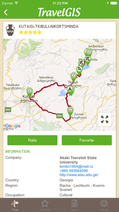 TravelGIS will help you easily select attractive and interesting tours all around the world. You will be able to travel virtually, follow virtual route and get detailed information about touristic objects. During the trip you will be able to localize yourself on the map, follow the route and avoid losing it by using the app. App is presented in three Georgian, English and Russian languages. Discover the World with TravelGIS.