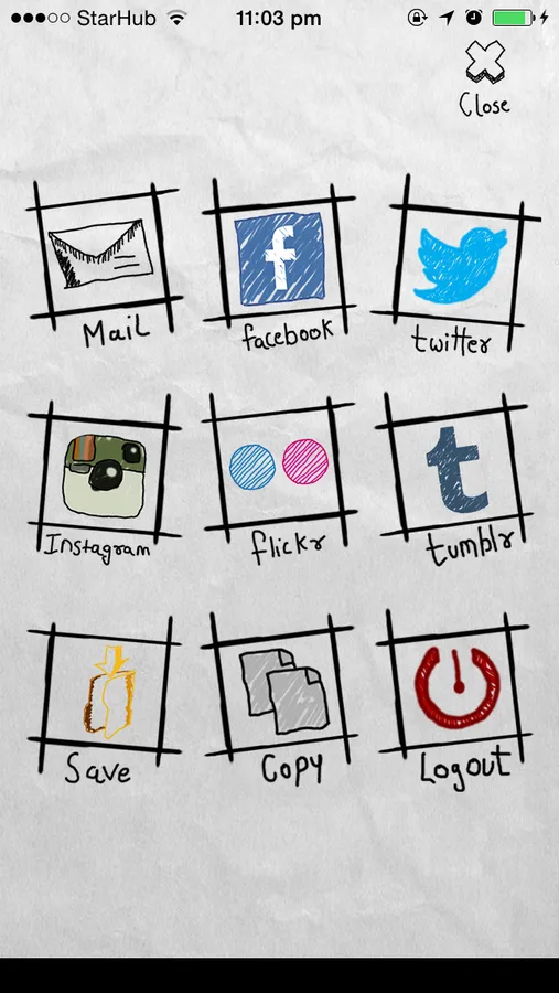 * Share your photo using all your phone's sharing applications: instagram, twitter, facebook, flickr, tumblr, etc