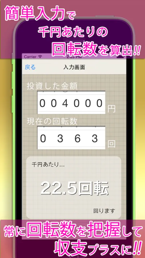 回転数チェッカーはパチンコの千円あたりの回転数を計算してくれるアプリです。