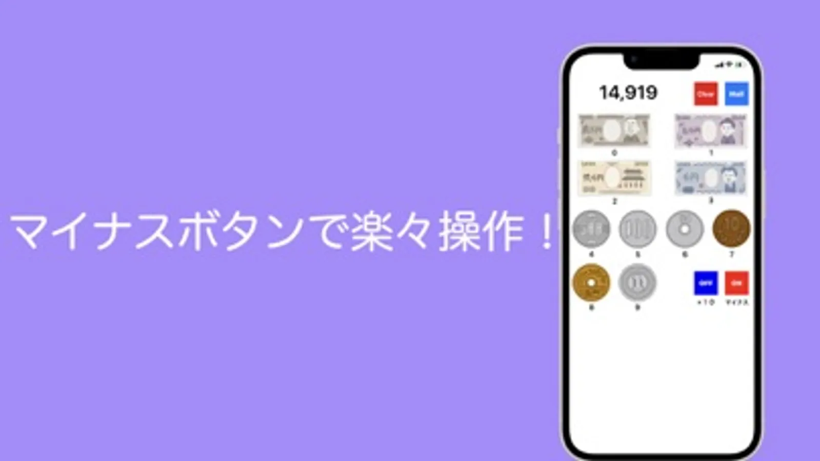 金種が多いとき、お金を数えるのに便利なアプリです。