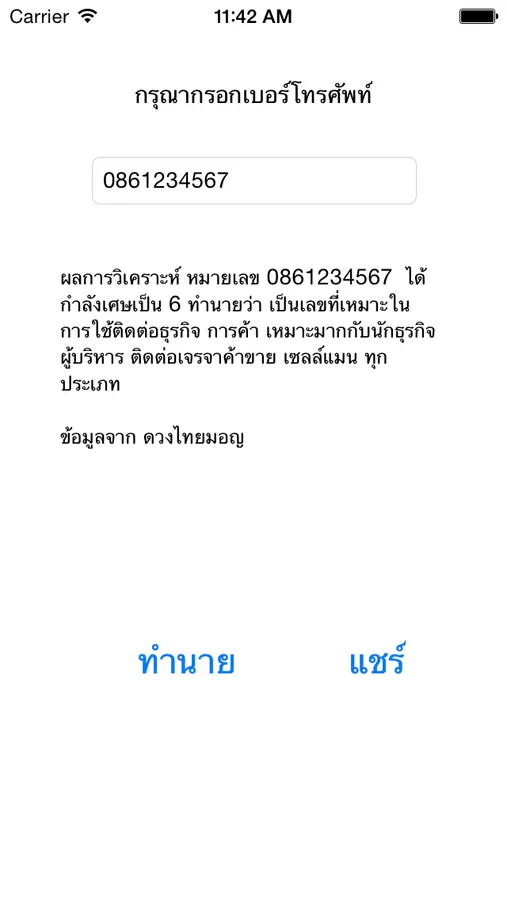 ทายนิสัยจากเบอร์โทรศัพท์ สามารถเช็คได้ว่าเบอร์ไหน เป็นคนมีลักษะนิสัยยังไง เบอร์ไหนดี สามารถแชร์ผ่าน facebook ได้ด้วย