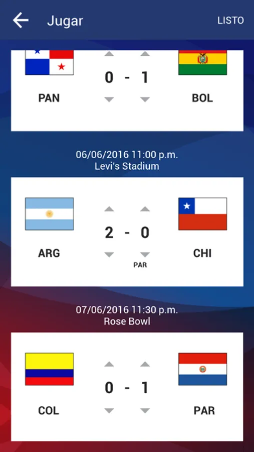 6. Comienza a Jugar, pronosticando los resultados de cada partido hasta 1 minuto antes de su comienzo.