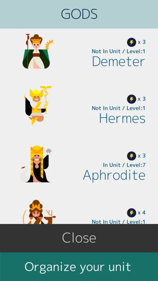 A variety of gods from the Greek myths may appear out of treasure chests that come out once in a while! They can be your allies. Win through the battles against monsters while utilizing the various abilities of the gods.