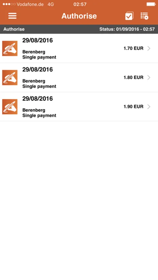 The app gives you an overview of all payment orders with banks for which signatures are still outstanding. Users can look at every payment order in detail, cancel them or authorise them with their second signature.