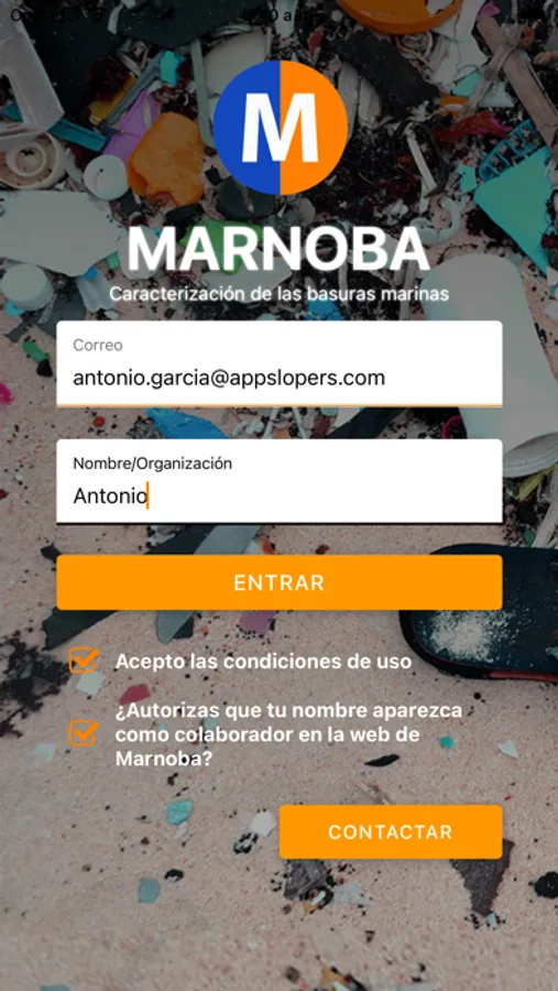 MARNOBA is a mobile application which allows citizens and entities to send information about marine litter that is being found on their coasts and seas. This app is designed as a field notebook, it avoid carrying paper during the monitoring and helps collecting, saving and sending the obtained information about it (categories, objects and quantities) to a online free viewer on the internet leaving access for any interested person (scientist, technicians or citizens).