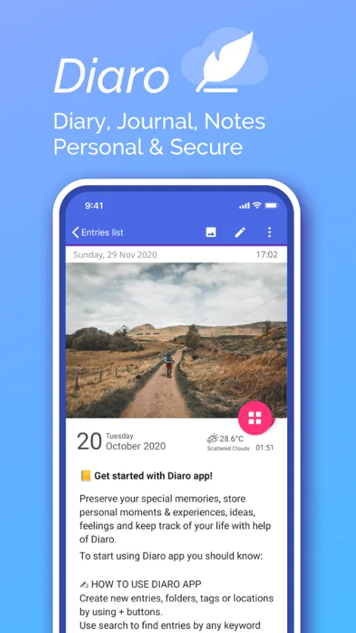 Preserve your special memories, store personal moments & memories or keep track of your life with help of Diaro.