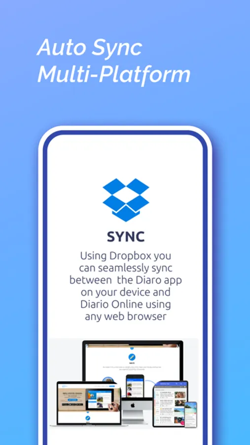 • Sync your diary across all your devices and Diaro Online using your Dropbox account