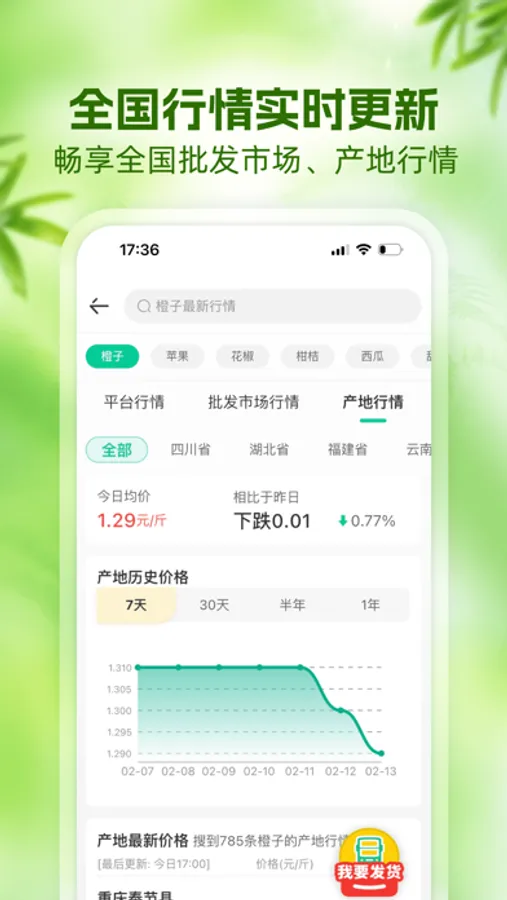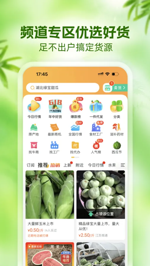 更真实的产地货源,实时查看产地动态视频,获取一手价格资讯;更全面的农产品产地百科,萝卜青菜哪里好一查便知,不同产区优势特点信息应有尽有;更快捷的产销对接,一键对接产地农户代办,帮你找到优质实惠的产地货源。