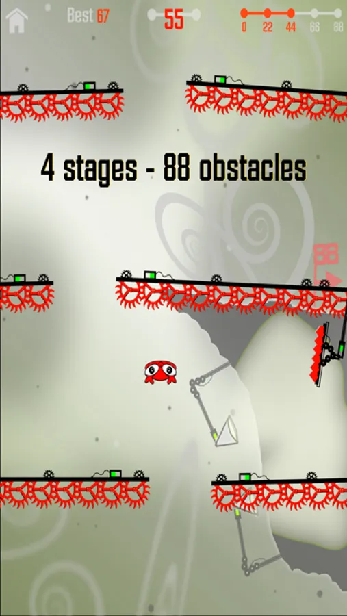 + Avoid dangerous obstacles - touch one and you'll go back to the start of the stage