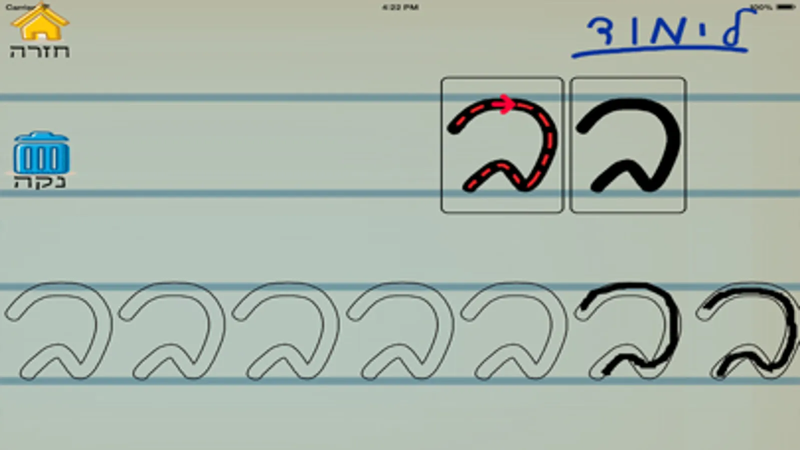 חלק ראשון לימוד שבו לכל אות יש אנימציה שמסבירה את כיוון הכתיבה