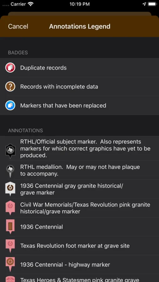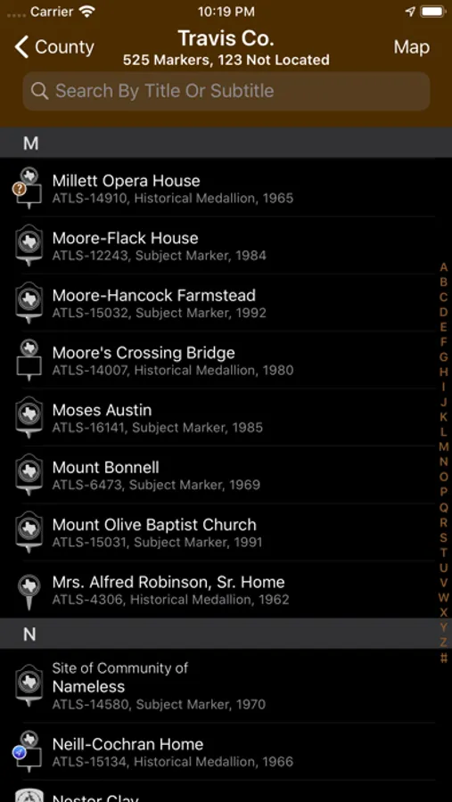 -Browse attractions where markers can be found including museums; cemeteries; state parks; historic districts; etc.