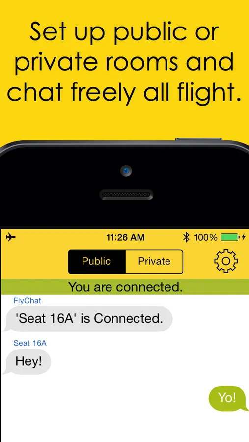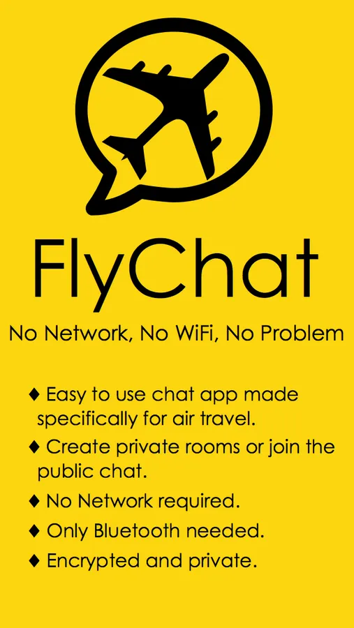 With no cell network connections allowed and wifi costly and not always available, FlyChat allows you to communicate easily from gate to gate.