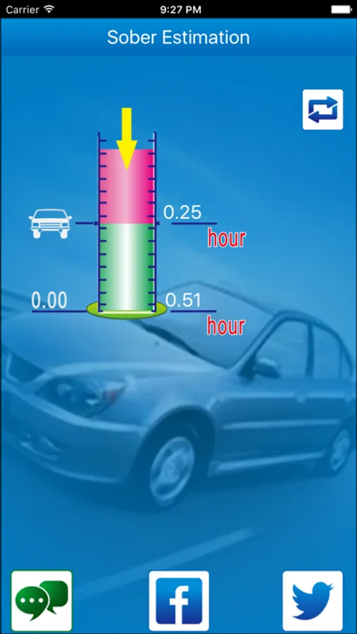 You may share test result with your family or friends by SMS, Facebook or Twitter. You will also be able to estimate how long it will take to get under legal limit or Zero alcohol.