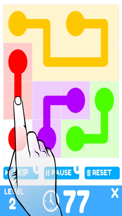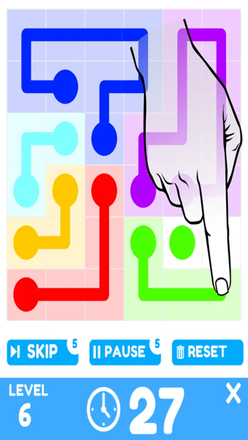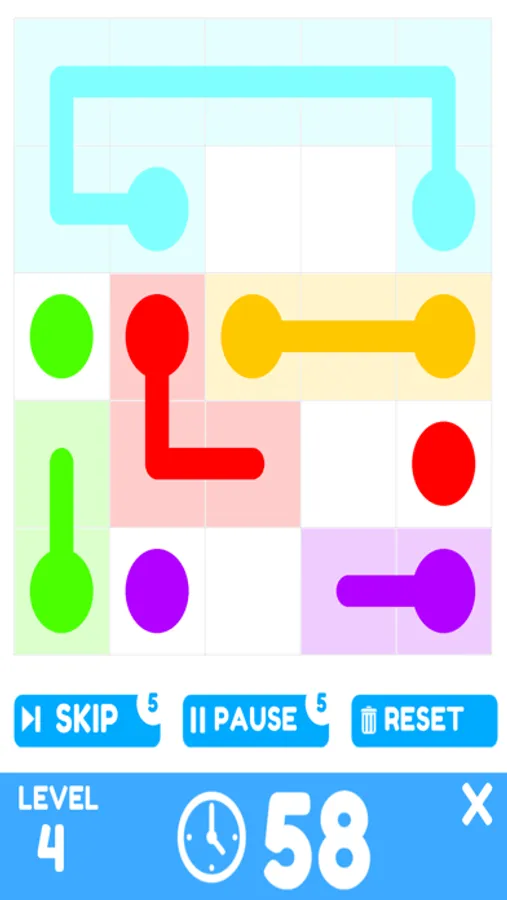 as you plan your way, use all existing sections of the playing field. The playing field is solved when all the dots are connected and no playing field section has been left unused.