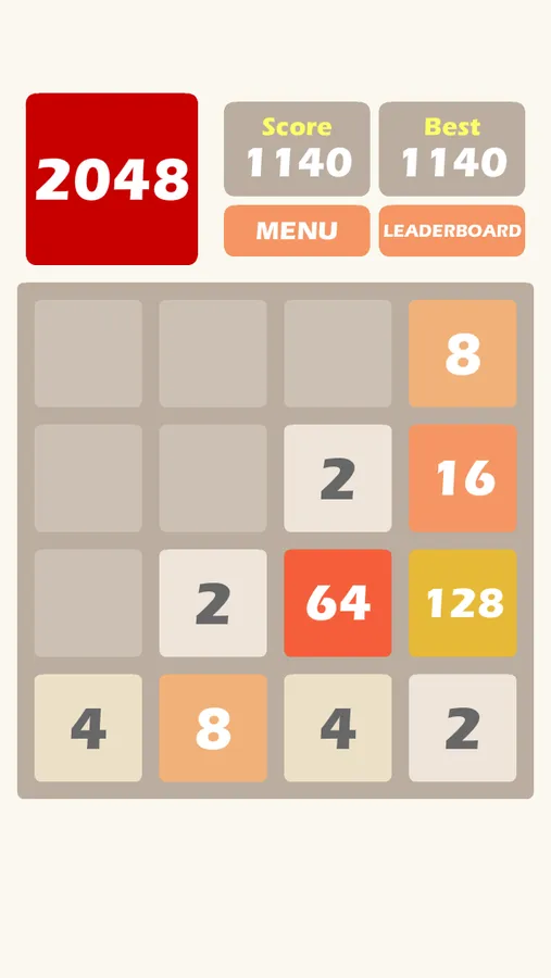 Swipe to move all tiles. When two tiles with the same number touch, they merge into one.