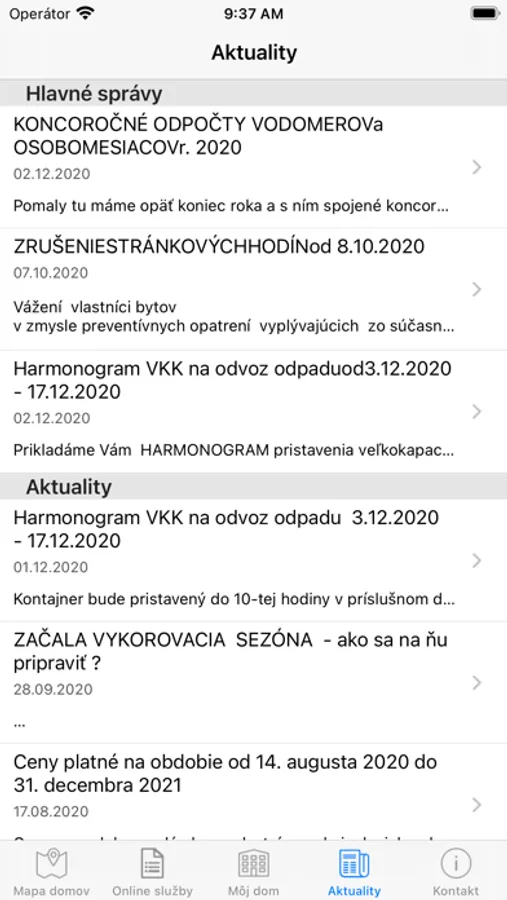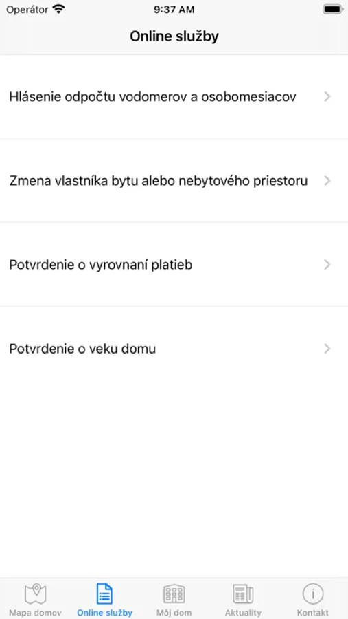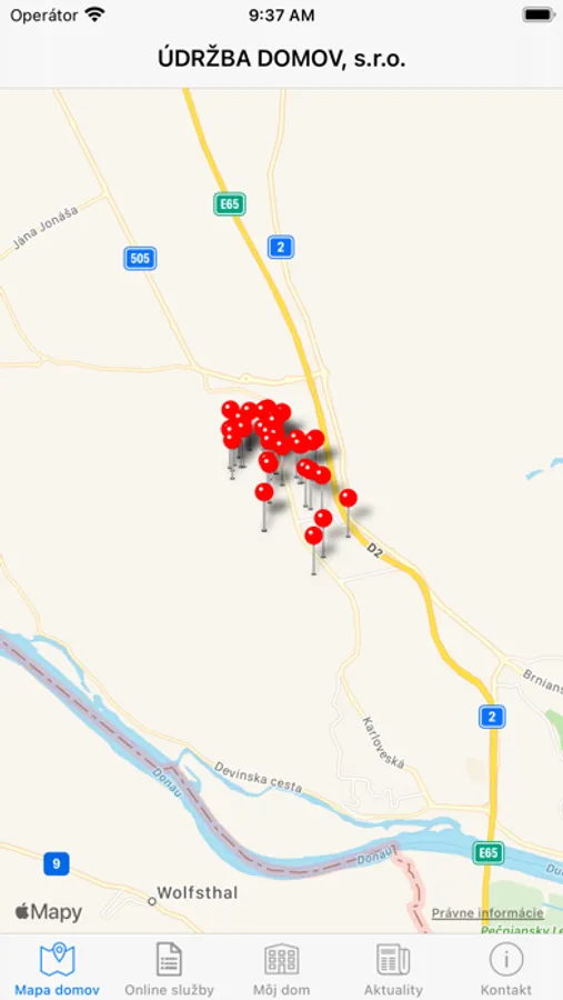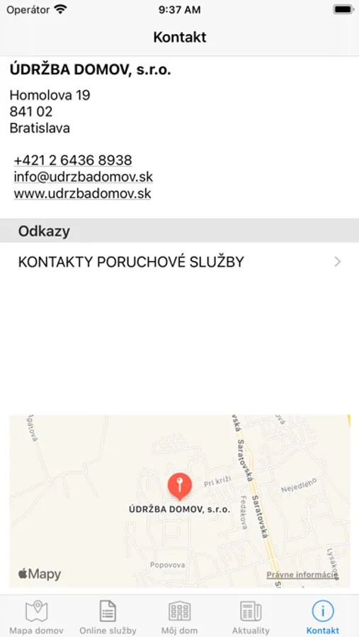 Official application of ÚDRŽBA DOMOV, s.r.o. offering services related to complex maintenance and management of residential buildings