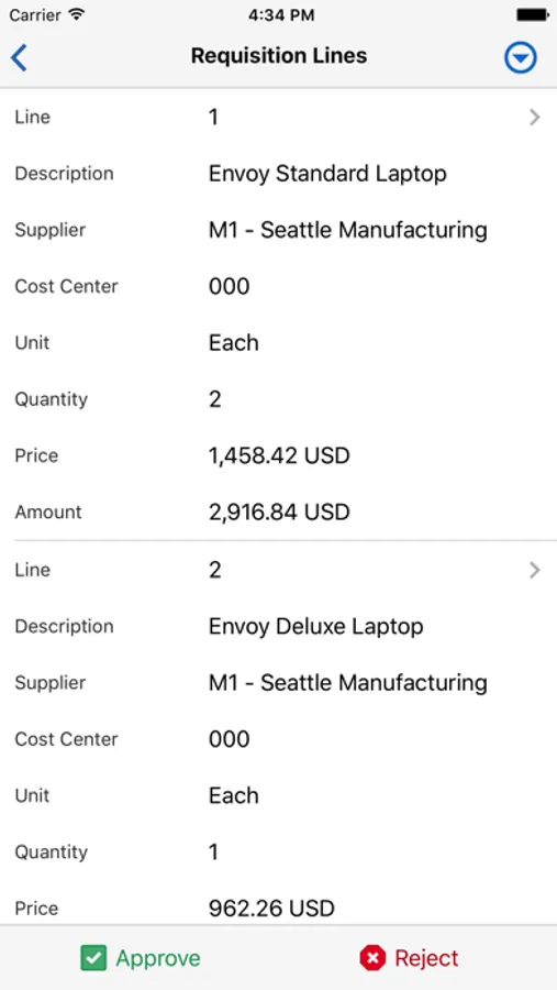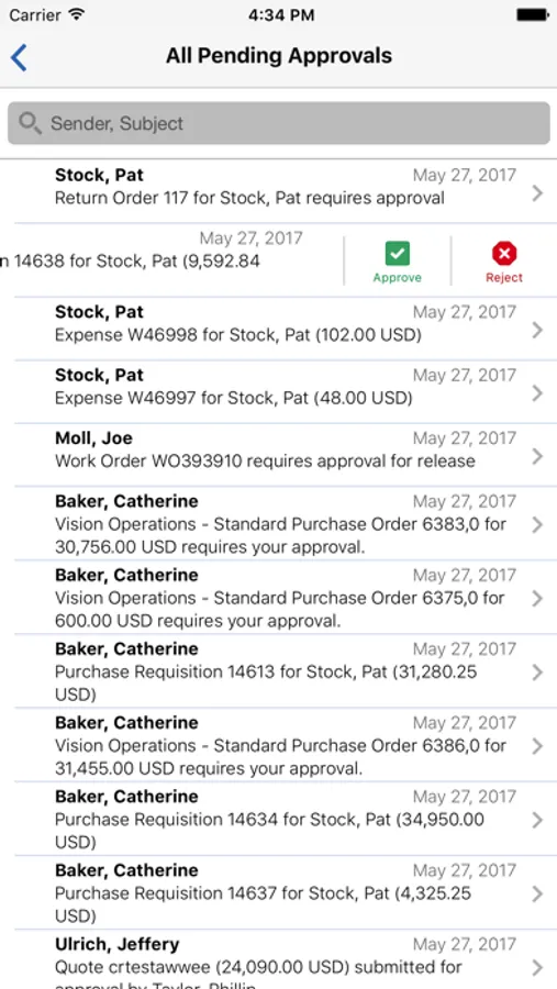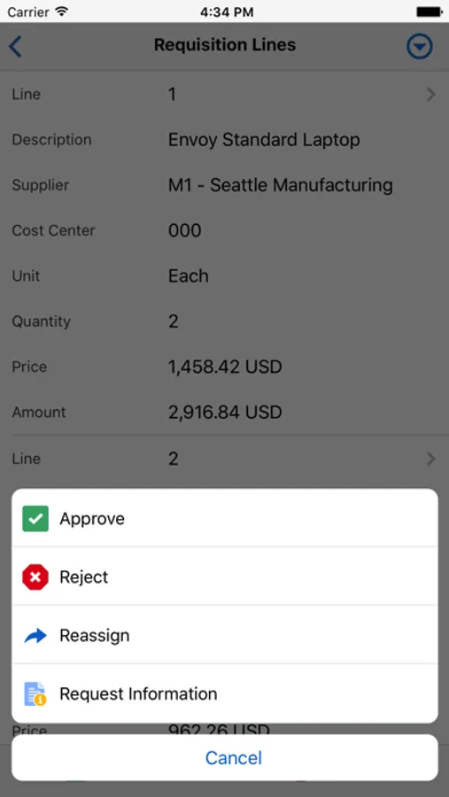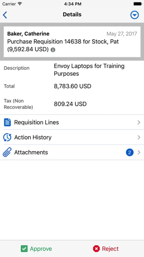- Approve or reject with or without comments, reassign to another user, or request more information