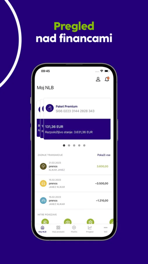 • pregled stanja, transakcij in plačil na vaših produktih,