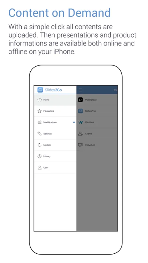 Slides2Go is the presentation tool that enables you to give perfect PowerPoint and PDF presentations. With Slides2Go, presentations are centrally managed and logically arranged so that you are able to direct different content to different users.