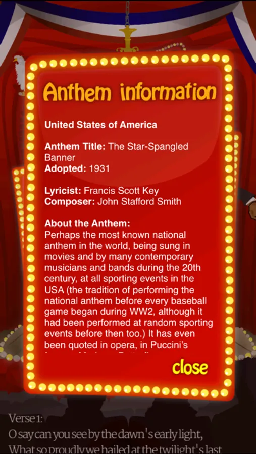 Puppet Anthems© presents national anthems in a showcase of creativity. It is fun entertainment, packed with information for kids and adults alike. This 2014 edition gives you the chance to learn all about the national anthems of all 32 countries at the Cup, complete with educational info on each anthem, including historical and cultural references plus complete lyrics. This app is your helpful companion when singing along before the big match, at awards ceremonies, and even in the classroom with teachers and friends. The lyrics of each anthem are passionately sung by men and women from each country and from all walks of life - just as you might sing it.