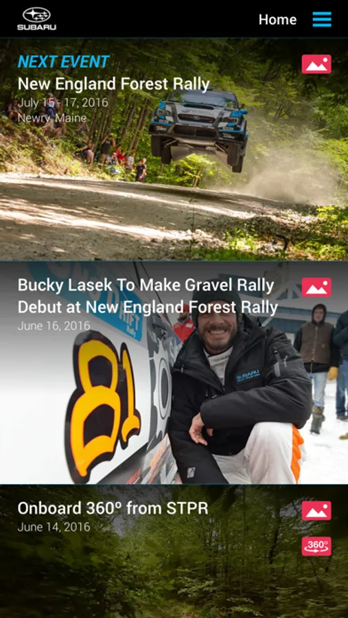 The Subaru Motorsports app brings the latest Subaru Rally Team USA news, media, and results from the Red Bull Global Rallycross and Rally America series championships directly to your fingertips. It can even send notifications when Subaru Rally Team USA is attending an event near you! Enjoy, and share, the continually growing library of award-winning 360º racing videos as well as the critically-acclaimed Launch Control video series and gorgeous team photography, all while staying up to date with your favorite Subaru Rally Team USA drivers and cars. Since 2014, Subaru has been leading the way in virtual reality by providing fans with race coverage in VR. If you own a mobile head-mounted display (e.g., Google Cardboard) simply launch the Subaru Motorsports app and play a 360º video, then cycle to the split-screen mode by clicking the viewing mode button in the lower right of the screen. Lastly insert your device into your head-mounted display and immerse yourself in the racing action from the safety of your own mobile device!