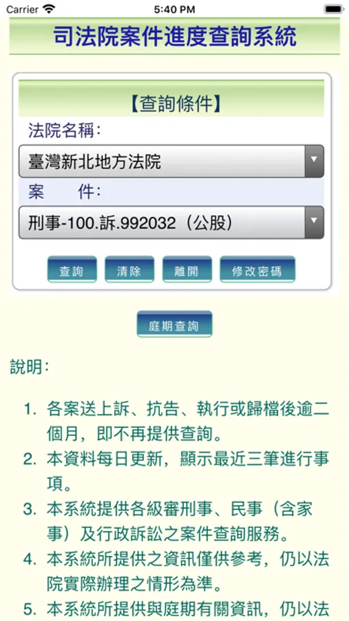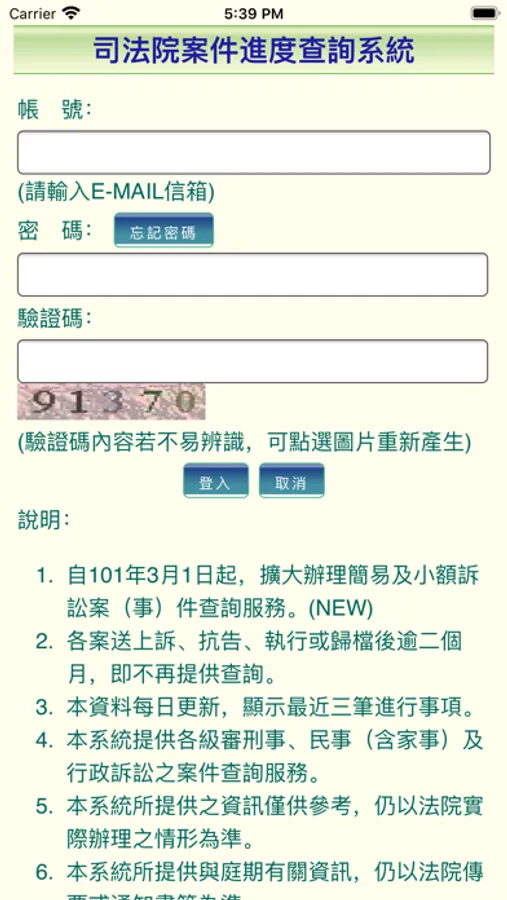 2. 本系統所提供之資訊僅供參考,仍以法院實際辦理之情形為準。