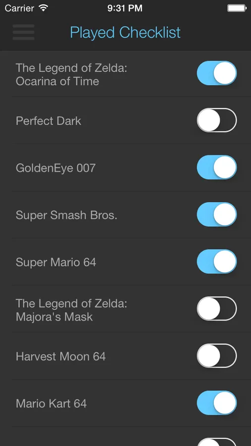 Played games checklist.