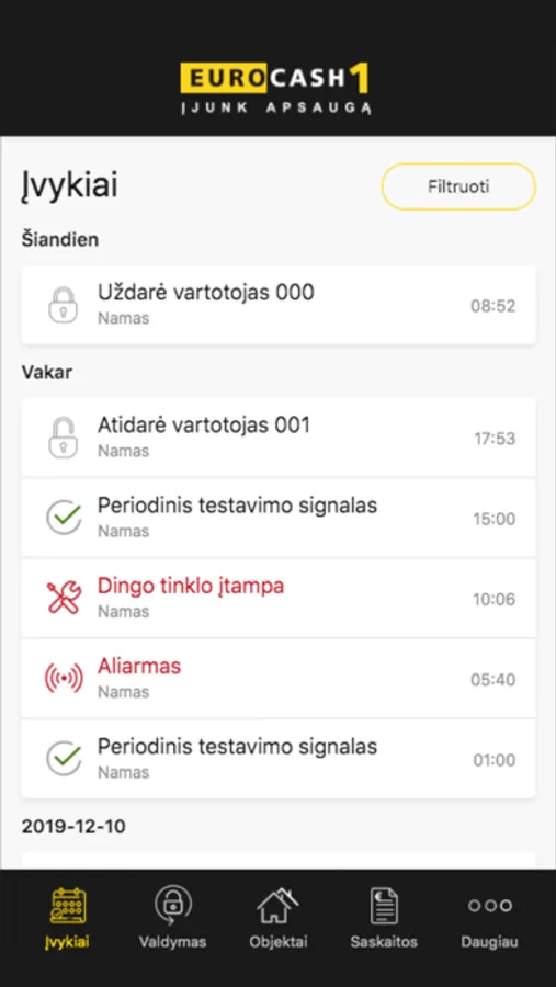 • Gauti kiekvieno saugomo objekto apsaugos sistemos pranešimus: