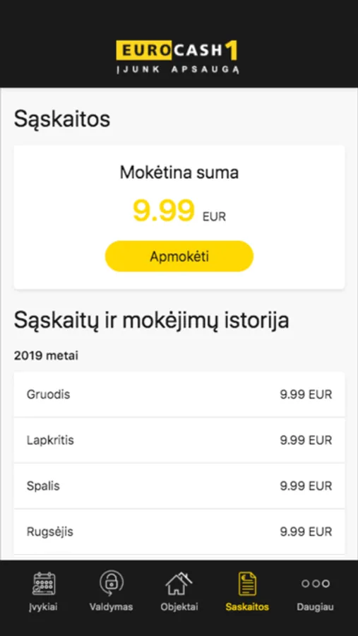• Patogiai apmokėti sąskaitas už apsaugos paslaugų teikimą.