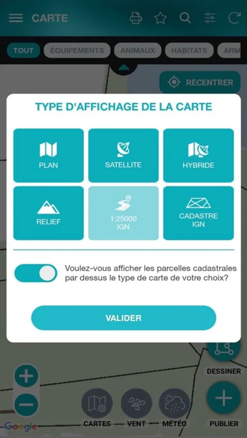 Satellite, cadastre, 1:25000, relief… vous serez à l'aise pour vous repérez!