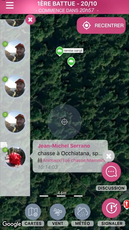 Géolocalisez-vous, communiquez avec les autres participants, signalez les animaux vus ou tirés.