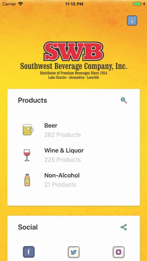 Please enjoy this free app from Southwest Beverage Company, Inc. The App allows you to find beer, wine, spirits and non-alcohol products we distribute throughout our market areas of Lake Charles, Alexandria and Leesville Louisiana. You will be able to search for the products nearest you, or by listing a city or zip code. Results will be listed by establishment with a map view and directions available. Find our products in restaurants, bars, and stores nearby. Thank you and enjoy responsibly.