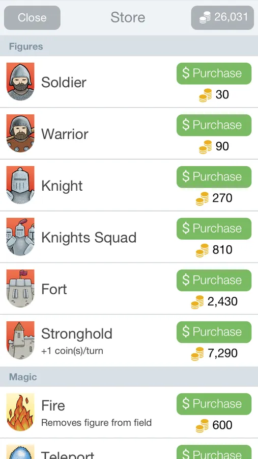 - Open a few dozen types of figures (from soldiers to impregnable citadels)