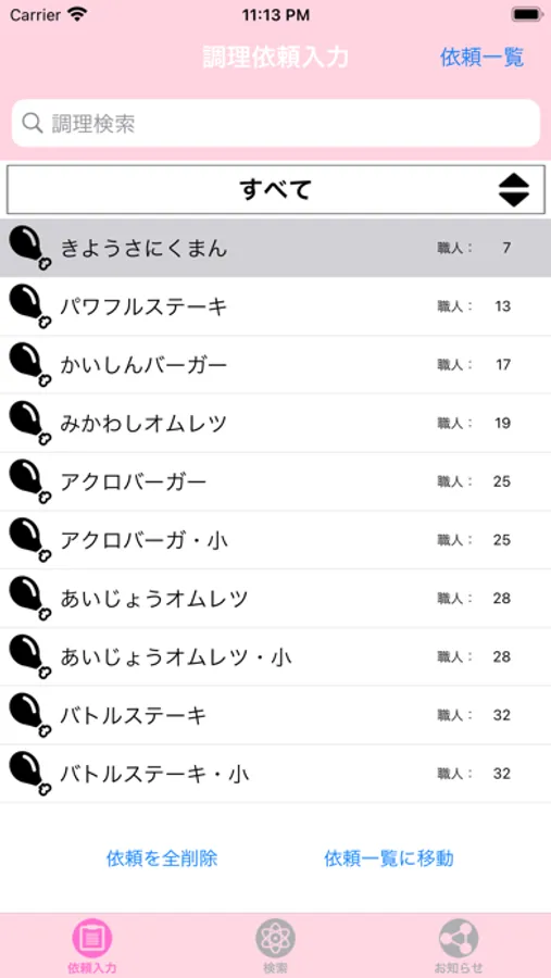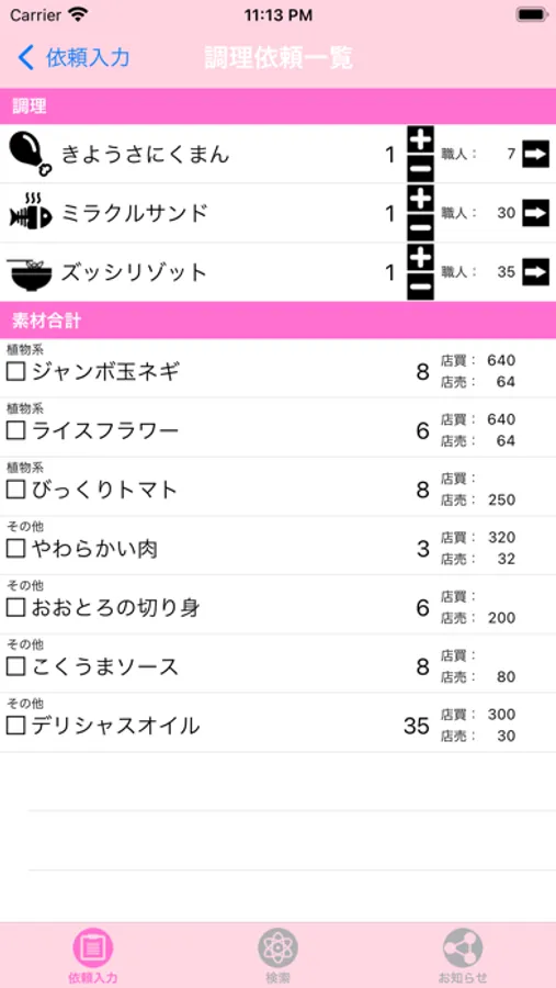 ・依頼された調理を登録