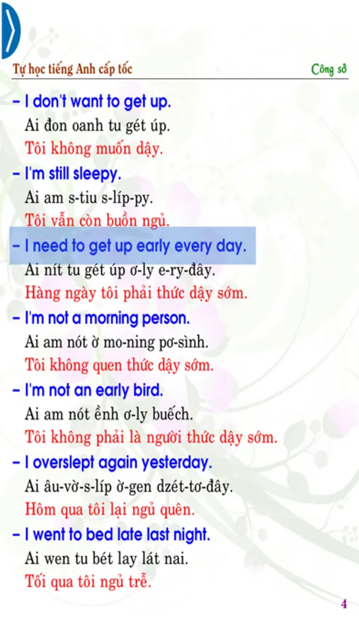 Quyển sách “Tự học tiếng Anh cấp tốc – Tiếng Anh Công sở (Tiếng Anh Văn phòng)” gồm 142 trang được thực hiện theo tiêu chí phiên âm theo cách đọc của người Việt và dùng để học mọi lúc mọi nơi khi trong tay có chiếc điện thoại thông minh. Trong quá trình biên soạn không khó tránh khỏi những sai sót ngoài mong muốn, hy vọng sự đóng góp quý báu từ các bạn giúp quyển sách ngày càng hoàn chỉnh hơn. Xin chân thành cảm ơn và chúc các bạn học tập hiệu quả! Những tiện ích khi bạn sử dụng Sách Thông Minh - SmartBooks của chúng tôi: Sách được tích hợp âm thanh (audio) vào trong sách, đánh dấu từng câu khi đọc, khi cần nghe lại câu vừa mới đọc hay câu nào đó thì bạn chỉ cần chạm tay vào câu đó thì sẽ phát âm thanh; Ngoài ra SmartBooks còn có tính năng thu lại giọng đọc (giọng của bạn tập đọc câu vừa học, vừa nghe) của bạn bằng cách nhấn vào nút Recorder (icon Micro), khi bạn nhấn vào icon “Headphone” “Nghe và viết”, xuất hiện màn hình có rất nhiều tính năng giúp bạn nghe và viết lại câu vừa nghe bằng phím hay bằng tay,… Sách được thiết kế để sử dụng mọi lúc mọi nơi khi trong tay bạn có chiếc Smart Phone. Đây là một bước đột phá của chúng tôi trong thời đại công nghệ số nó sẽ giúp các bạn rất nhiều trong việc học và đọc sách.