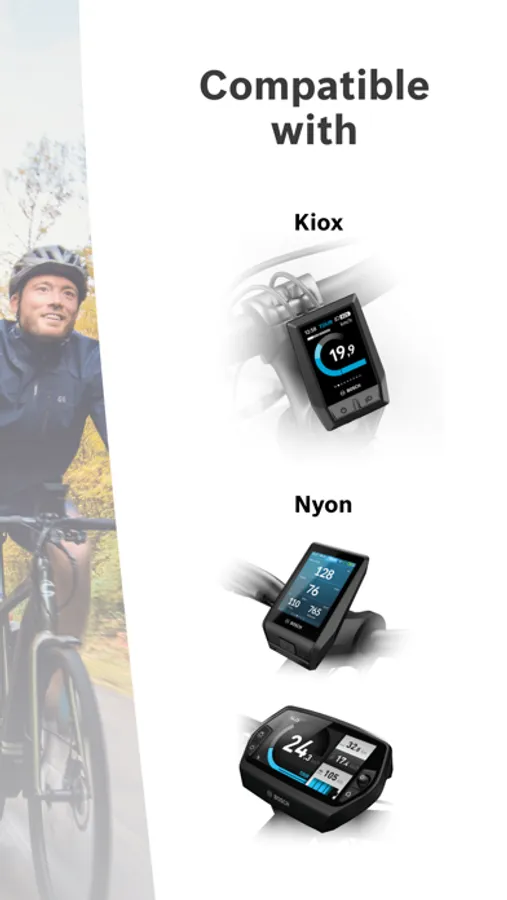 Please note: This app can only be used for eBikes with Bosch drive units and Nyon or Kiox on-board computers with Bosch eBike system 2.
