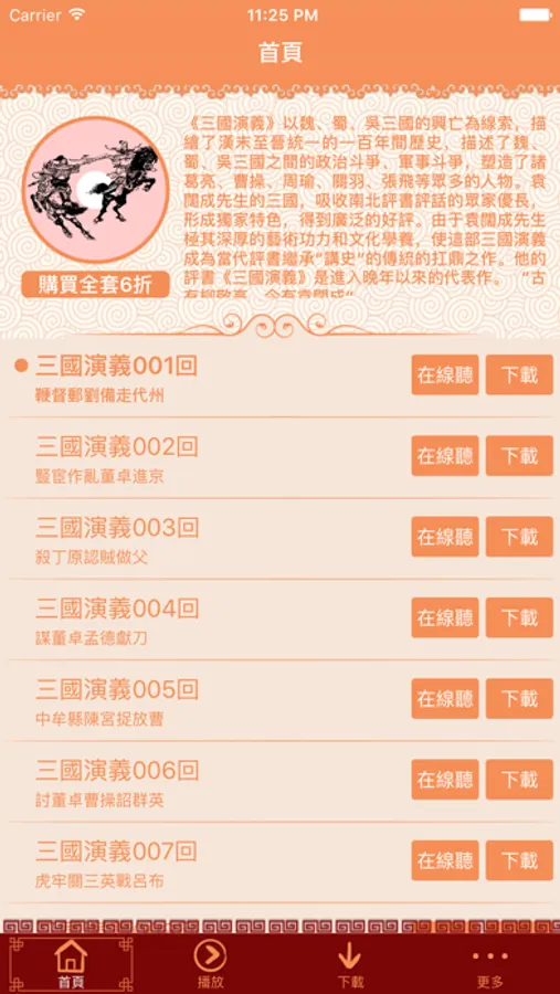 《三国演义》以魏、蜀、吴三国的兴亡为线索,描绘了汉末至晋统一的一百年间历史,描述了魏、蜀、吴三国之间的政治斗争、军事斗争,塑造了诸葛亮、曹操、周瑜、关羽、张飞等众多的人物。袁阔成先生讲的三国,吸收南北评书评话的众家优长,形成独家特色,得到广泛的好评。由于袁阔成先生极其深厚的艺术功力和文化学养,使这部三国演义成为当代评书继承“讲史”的传统的扛鼎之作。他的评书《三国演义》是进入晚年以来的代表作。 “古有柳敬亭,今有袁阔成”。