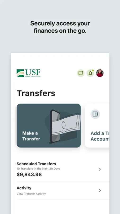 "Safely manage your USF Federal Credit Union accounts anytime, from anywhere. With mobile banking, you can:
