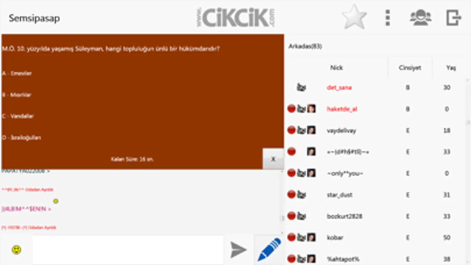 - Genel kültür sorularına aynı anda cevap verip odadaki diğer kullanıcılarla yarışılabilir